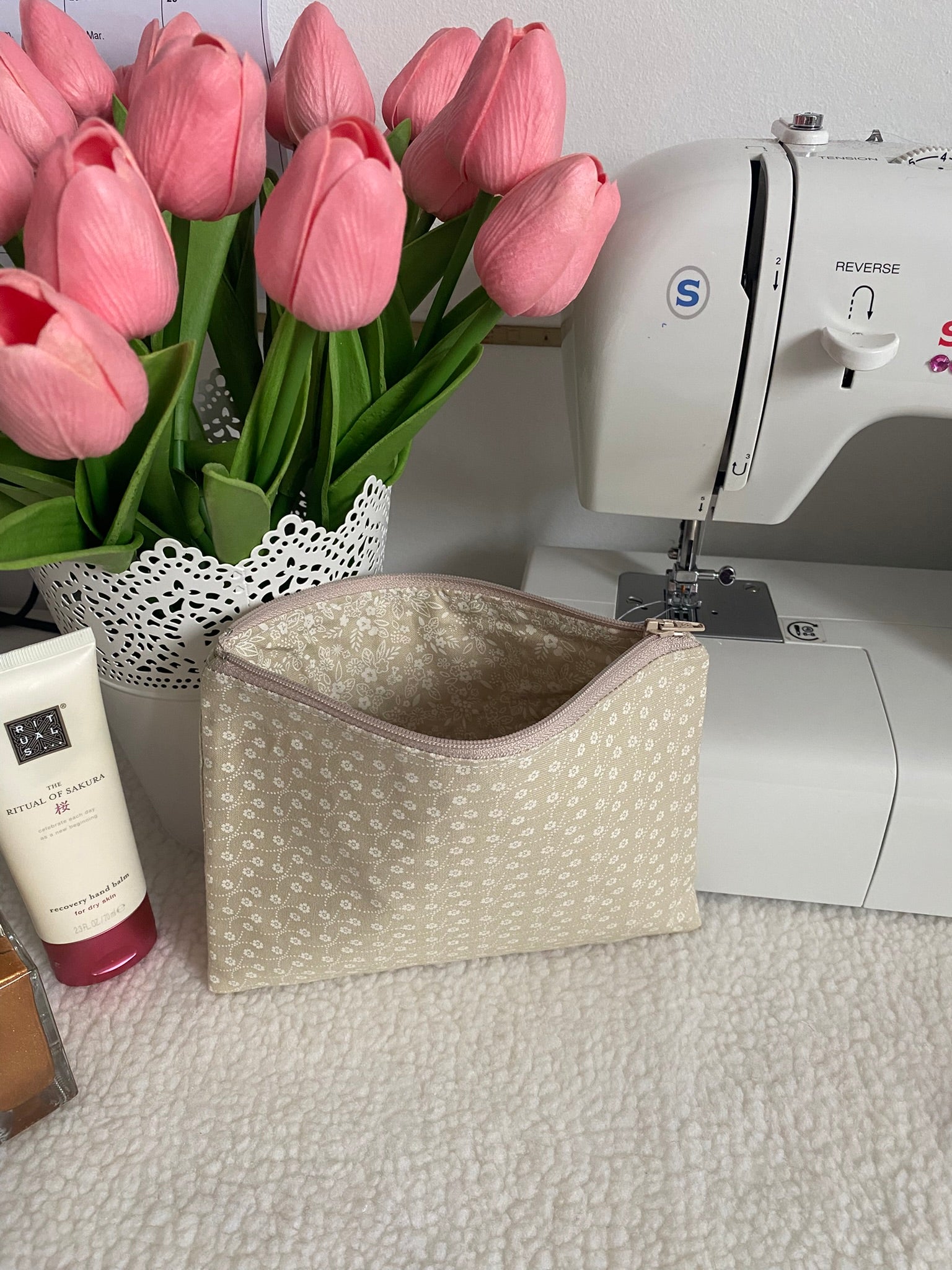- Doublure : tissu en coton beige