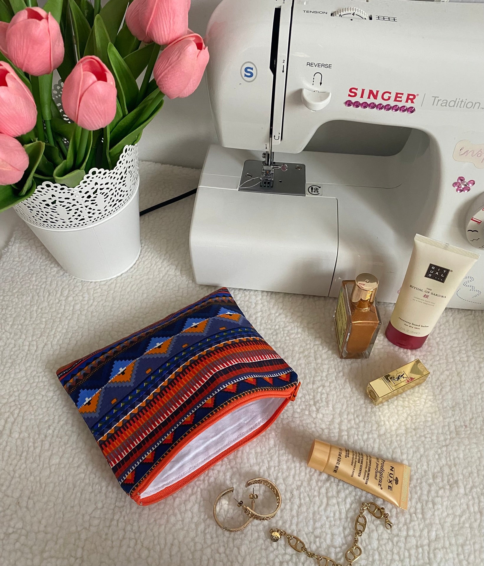 - Doublure : tissu en coton uni blanc